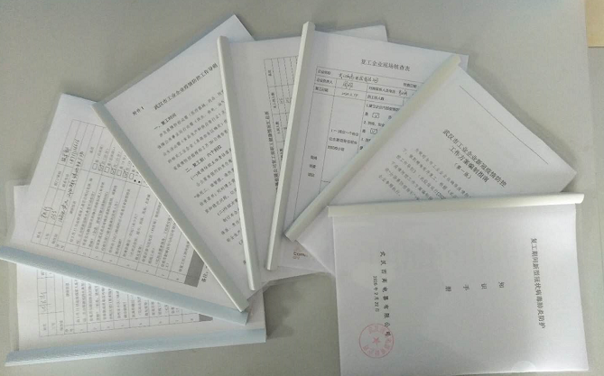 微信群報平安了解員工狀況;黨支部成員為首批復工人員做工作、談心談話、解除后顧之憂、解決復工復產(chǎn)的疑惑及返司途中各項問題;準備好復工復產(chǎn)期間新型冠狀病毒肺炎防護知識手冊、工業(yè)企業(yè)防控工作方案、防控應急預案等資料;做好廠內(nèi)辦公區(qū)、生產(chǎn)區(qū)等各個區(qū)域消毒工作;設置好體溫監(jiān)測登記臺、消毒處;采購防護物資;設置隔離間。