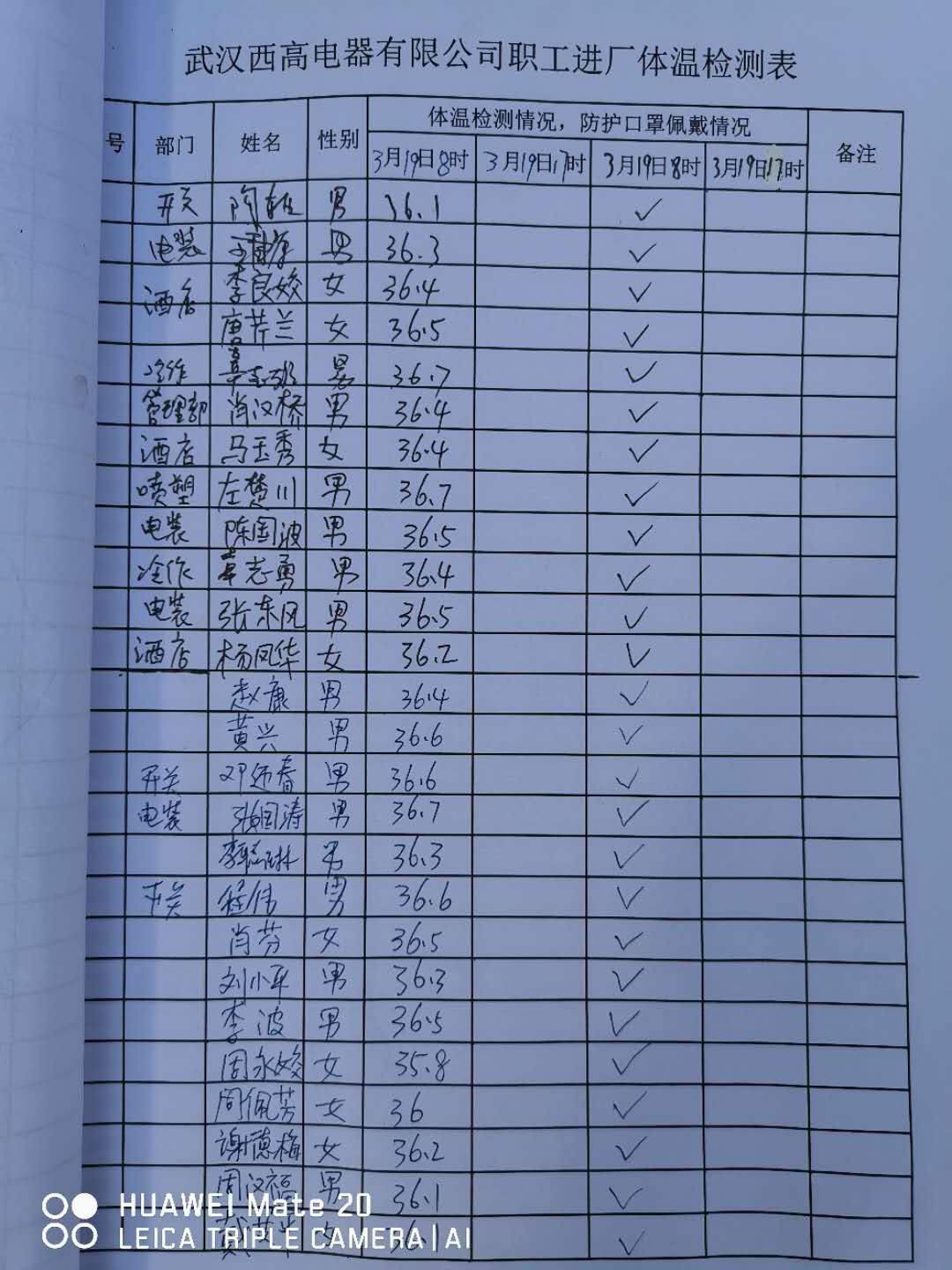 眾志成城,防控就是責任。自復工以來,武漢西高電器有限公司堅持黨的領導,堅持黨員干部先行的方式,嚴格按照上級部門要求,明確疫情防控主體責任,切實落實復工復產(chǎn)期間的防控工作。
